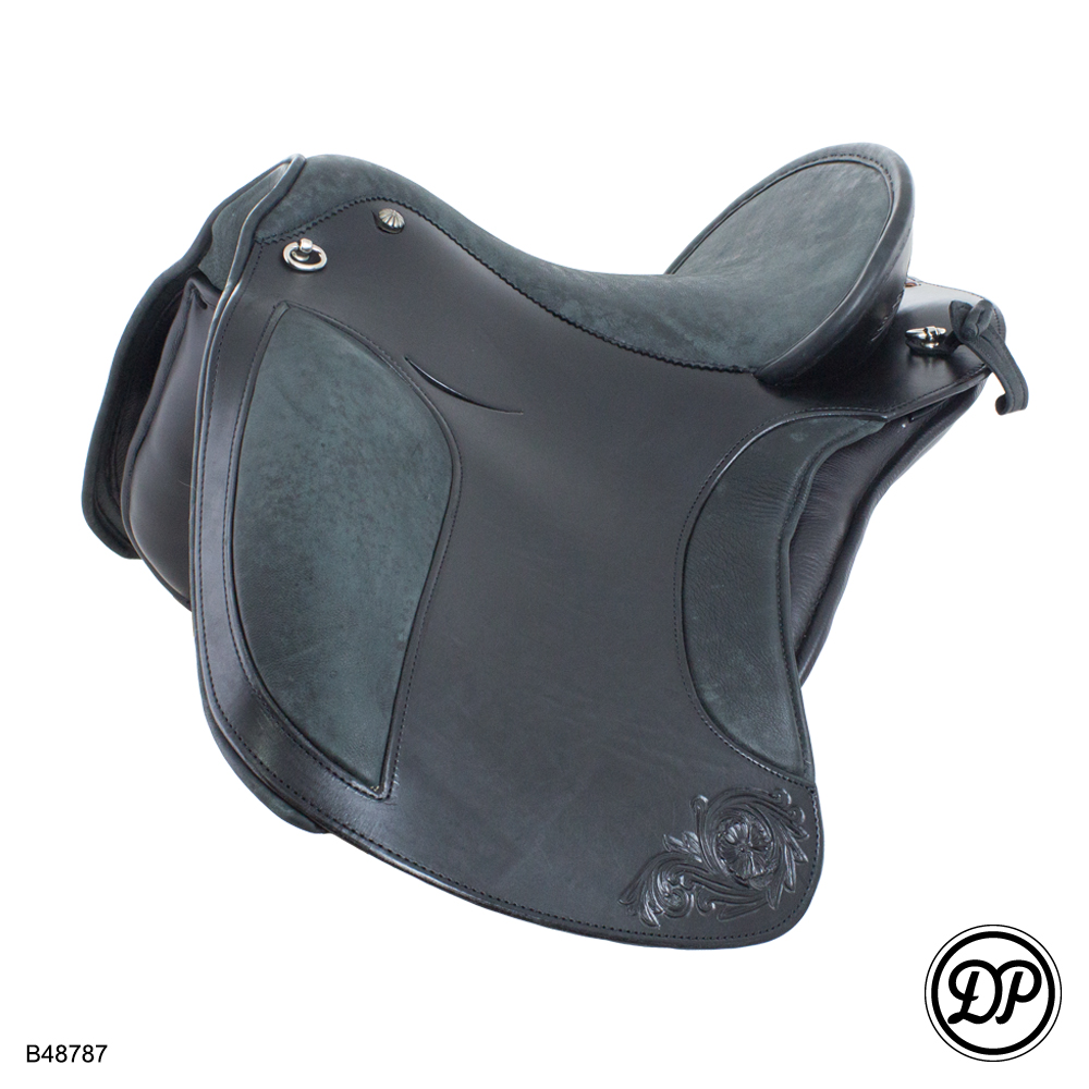 Ein speziell für die Disziplin „Working Equitation„ entwickelter Sattel, der sowohl für die Dressurarbeit, als auch für lange Ritte im Gelände geeignet ist. Durch das stufenlos verstellbare Kopfeisen, variable Strippengurtung, Wolle gefüllte Sattelkissen und Klettpauschen im Kniebereich ist er sowohl für Pferd als auch Reiter individuell einstellbar. Dekorative Nietverzierungen oder Randpunzierungen geben diesem Sattel eine spezielle Note.